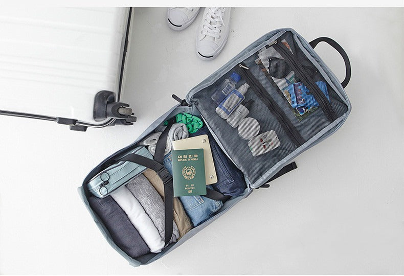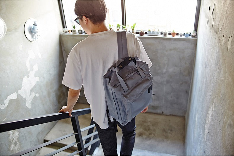 The bag can be carried as an holdall or worn as a backpack, with the help of it's re-enforced handles and adjustable shoulder straps. The rear support is also re-enforced with sturdy cotton/polyester foam, for general comfort.