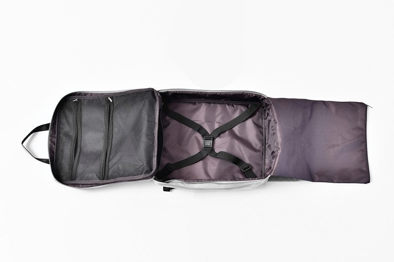 The Reiset comes with multiple internal compartments, built-in with the frequent traveller and outdoorsman in mind; wide external pocket, Internal compartment with elasticated strap, internal nylon pockets for shoes and hidden base zipper pockets.