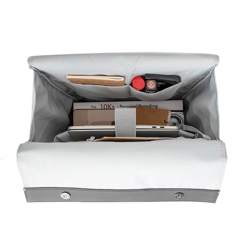It comes in a simple, minimalist design and created with high quality, lightweight material. Best of all, it has a large interior that can fit your laptop (upto 16inch), your books, make-up and other travel essentials.