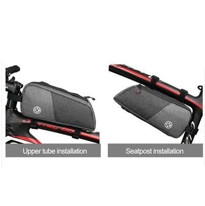 It has an elongated design that can fit your travel pump or other long items. Because of its spacious interior, you can put all your valuables, like your phone, earphones, cycling gloves and other travel essentials. You can install this storage bag on your bicycle in two-ways, on the upper tube or on the seat post.