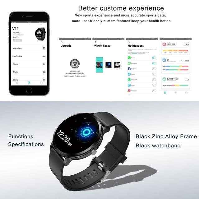 V+ Water-Resistant Smartwatch with Heart Rate Blood Pressure Monitor for Men-Women