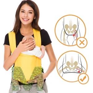 This carrier is specially designed to be comfortable for your baby's legs. It's made of soft, cotton material too, and comes in a bright yellow color.