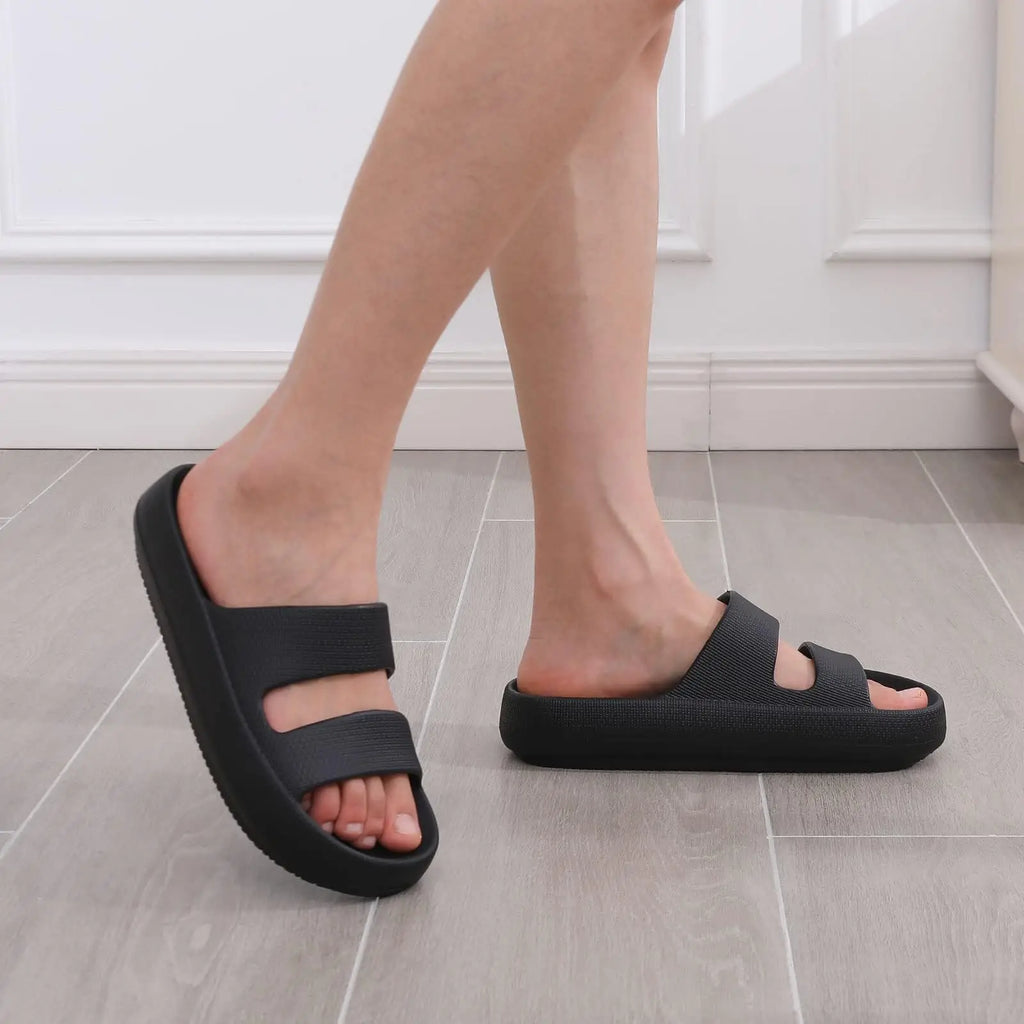 Featuring arch support, deep heel cups, and wavy contours, these slippers improve posture and relieve foot pain like plantar fasciitis and swollen feet. The durable, non-slip sole ensures stability on pools, showers, and beaches, keeping you safe on wet surfaces.